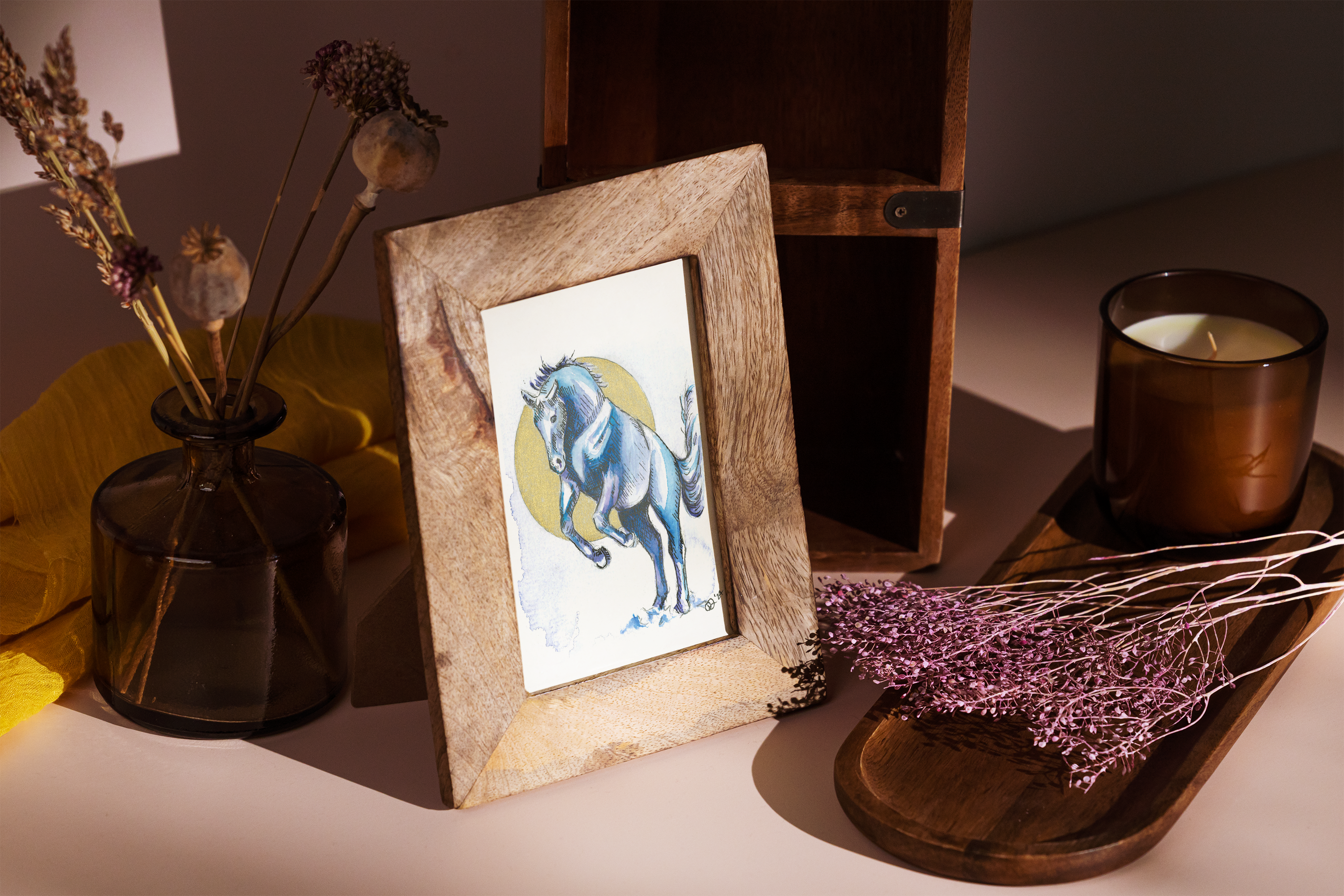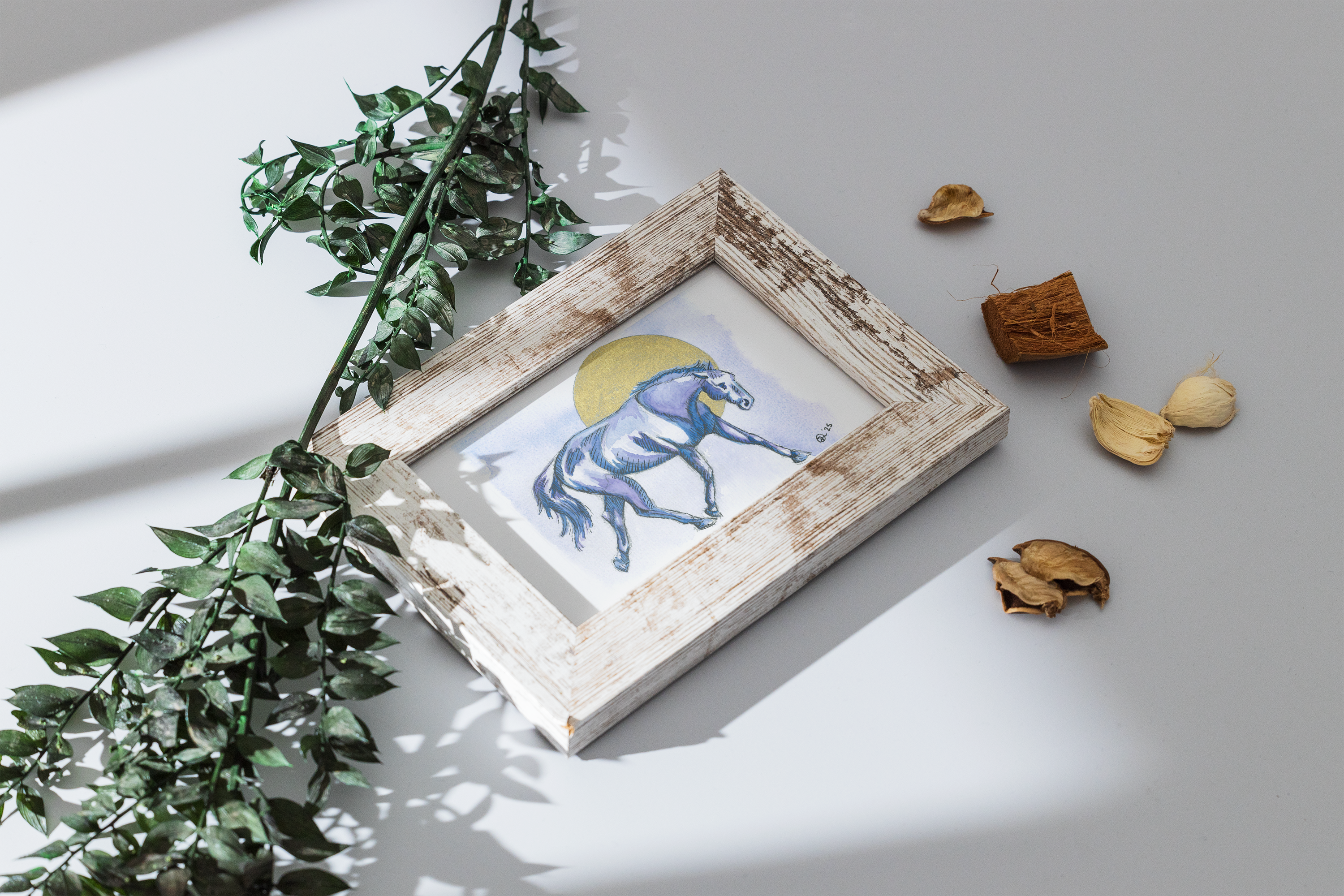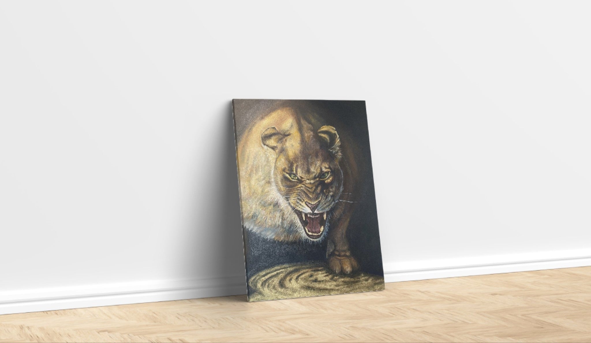 When I present my art to you I want you to be able to envisage it in your home - not in my cramped studio where I have three or four projects on the go. The art itself I do not touch up, I simply use either photographs or scans and drop them into photoshop mock ups.